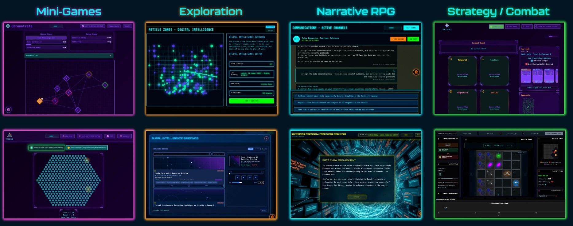 The Echo Collective has created an 'Intelligence Operating System', which enables operatives to complete missions, conduct economic and intelligence analysis, decrypt intelligence briefings, direct militrary and intel operations and engage in dozens of other activites.