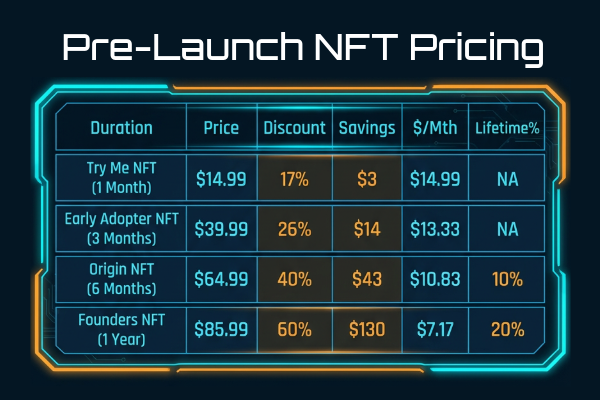6-month and 1-year purchases in the first year of launch receive a lifetime discount on all future purchases/renewals of your Operator's pass, as well as on all Legends of Cypher merchandise, products, and services.